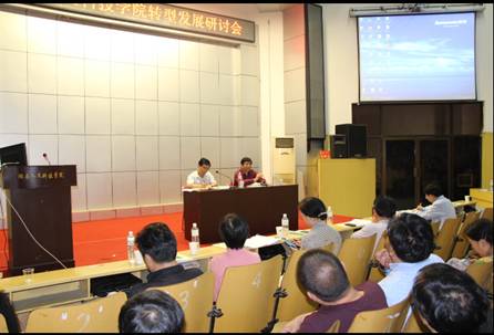 全校14个专业系(院、部)负责人结合外出考察体会和本单位实际作了专题发言,主要围绕专业人才培养目标、专业建设、课程建设、师资队伍建设、实践教学硬件建设、毕业综合训练改革六个方面谈专业系(院、部)的转型发展思路。教务处等6个机关处室和教辅单位负责人分别从教学改革、科研创新、师资队伍建设、教育科学研究、校企合作、区域经济服务等角度畅谈转型发展构想。