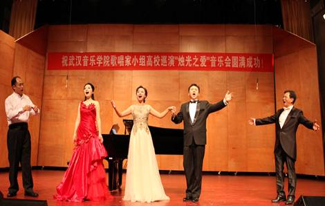 5月29日,音乐舞蹈系特邀武汉音乐学院歌唱家小组在音乐厅举办了《烛光之夜》音乐会,校长刘和云等院领导出席观看了本场音乐会并给予了高度评价。
