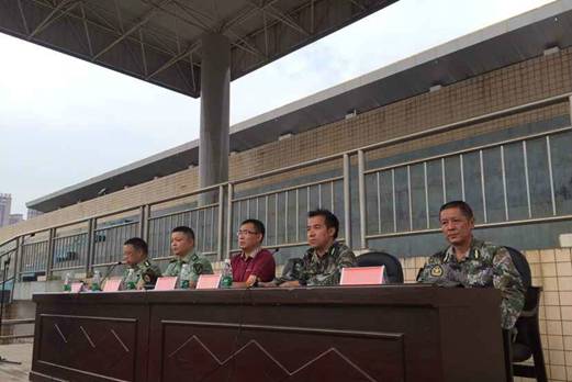 9月15日上午,KY官网2015级新生军训动员大会在田径场举行。军训领导小组组长、校长助理谢贵辉,军训团团长、武装部部长郑秀星,军训团政委、学工处处长余为,军训团参谋长、武装部副部长雷振东,娄星区武装部副部长邓勇中校出席。郑秀星主持会议。