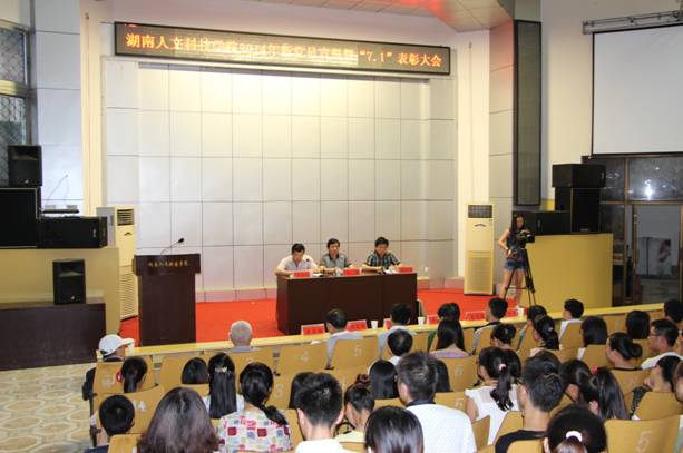 会议在庄严的《国歌》声中开始。会上,百名新发展的预备党员进行了集体宣誓,党委副书记李尚益同志宣读了《关于表彰2013年度先进基层党组织、优秀党员和优秀党员工作者的决定》、《关于表彰湖南省普通高校百佳大学生党员的通报》,分别给获得湖南省普通高校百佳大学生党员王华军、2013年度学校先进基层党组织、优秀党员和党务工作者颁发了奖状。优秀党员代表经济与管理系的李宁老师、新发展的预备党员代表信息科学与工程系的彭佳丽同学作了典型发言。