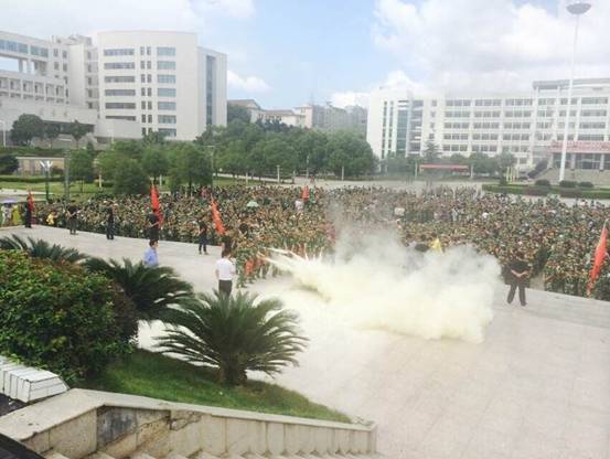 ,KY官网为正在进行军训的4000多名2014级新生举行了消防知识讲座及疏散灭火演练。