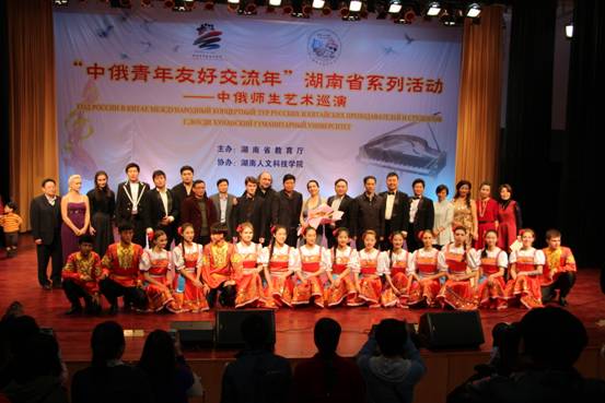 11月18日晚7:00,“中俄青年友好交流年”湖南省系列活动---中俄师生艺术巡演在KY官网音乐厅隆重举行。娄底市委统战部、娄底市对台工作办公室、娄底市外专局、娄底市财办等单位领导,KY官网在家的校领导、师生代表600余人欣赏了此次演出。