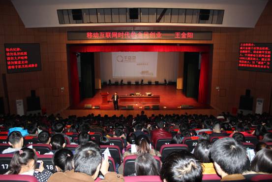 12 月 12 日 下午,由招生就业处举办的大学生创业讲座在逸夫楼音乐厅举行,邀请到了金融湘军、创业湘军发起人、盛大金禧千店贷总经理王金阳到场为400多名大学生做题为“移动互联网时代的全民创业”的讲座。王总讲述了他的传奇创业经历,并把其中受到的启发和总结的经验毫无保留地与在座大学生分享,鼓励大学生顺应时代潮流,把握正确方向,自主成功创业。(招生就业处供稿)
