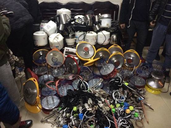 ,由学工处、保卫处共同组织,联合对全校1700余间学生宿舍进行了地毯式突击检查,重点清查宿舍内管制刀具和大功率电器。各系(部)分管学生工作领导、辅导员、学生会干部、校卫队干部积极参与配合。尽管学校三令五申严禁在学生宿舍使用大功率电器,但检查过程中仍发现有不少学生在违规使用。检查人员当场对他们进行了批评教育,并按学校规定收缴了大功率电器。此次行动共收缴电烤火炉60个、电饭煲34个、热得快500余个、酒精炉3个、管制刀具3把。