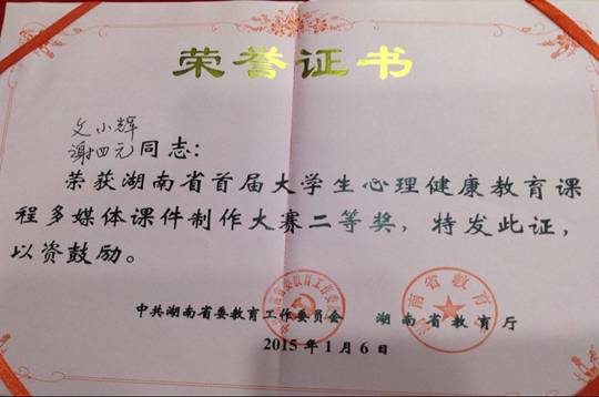 1 月 6 日 ,由湖南省委教育工作委员会、湖南省教育厅主办,湖南省高校心理健康教育工作研究会承办的湖南省首届大学生心理健康教育课程多媒体课件制作大赛决赛在长沙举行。经过全省各高校校内初评,共144件作品入选。KY官网教师文小辉、谢四元的2件作品获决赛资格。经过激烈角逐,共评出一等奖2名,二等奖5名。KY官网教师文小辉、谢四元荣获二等奖,充分展示了KY官网教师的风采。(学工处供稿)