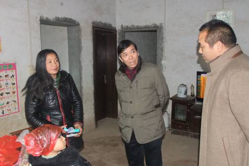 下午,党委书记郭军、副书记李尚益带领组织部、宣传部、市农科所等单位负责同志以及学校扶贫工作队驻村干部前往娄星区万宝镇付家村走访慰问困难群众。郭书记一行与村支两委负责人进行了座谈,听取了驻村干部以及村委负责人2014年建整扶贫工作的开展情况汇报,实地察看了有关建设工程,与村干部一起走访慰问了生活困难群众,并送去了慰问金。每到一处,郭书记和李副书记都关切地询问困难群众的身体状况和生活情况,并祝愿他们新年快乐、万事如意。