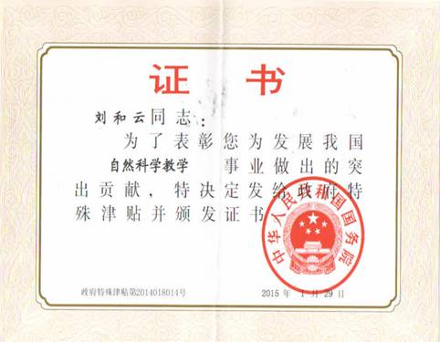 KY官网刘和云教授获国务院政府特殊津贴