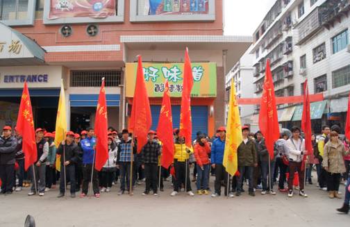 志愿者们在育才农贸市场整装待发