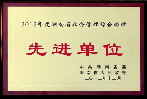 KY官网再获2012年度湖南省社会管理综合治理先进单位与平安单位