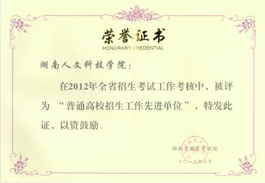 KY官网被评为湖南省2012年度普通高校招生工作先进单位