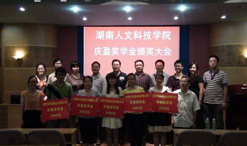 6月8日下午,在KY官网设立的第一个企业奖学金——“庆盈奖学金”颁奖大会在养根楼多媒体报告厅隆重举行,副校长蒋建初、校工会主席邓和秋、东莞市庆盈实业有限公司总经理刘宇鹏、学工处和招就处相关负责人及化学与材料科学系师生共200余人参加了大会。