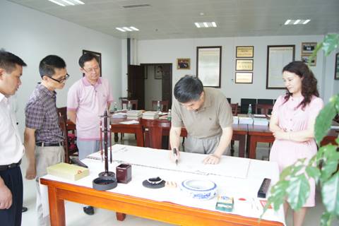 在校期间,王天骏在梅山文化研究中心工作室与相关专家学者进行了学术交流,欣然题词“再造中华文明,事关天下兴亡”。并向KY官网图书馆捐赠了他的著作《文明梦》。(邱阳旭供稿)