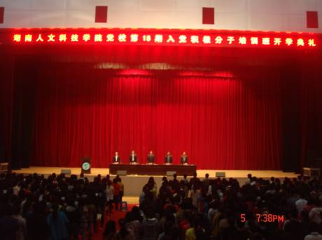 11月5日晚,KY官网党校第18期入党积极分子培训班开学典礼在体育馆隆重举行。