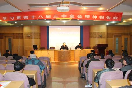 刘教授就十八届三中全会精神作了精彩的报告。他说,十八届三中全会是改革开放新的历史时期召开的一次十分重要的会议,是我党在现阶段新的行动纲领。刘教授从深刻认识全面深化改革的重大意义,深刻把握三中全会精神的指导思想、重大目标,深刻领会改革开放的主要任务、重大举措等方面,全面深入地阐释了十八届三中全会精神。