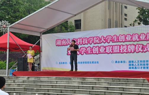 教授、市人力资源与社会保障局就业服务局刘博文局长、娄底市创建创业型城市办公室李剑雄主任,湖南七碗茶茶叶公司总经理李定军总经理以及招生就业处、各系领导、就业专