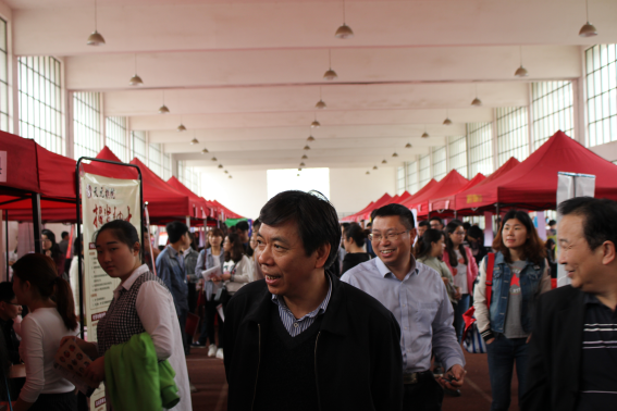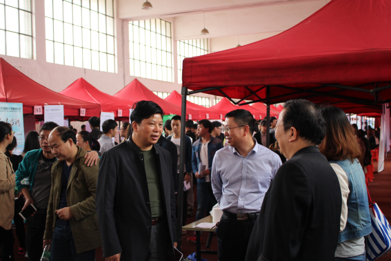 4月12日,KY官网2016届毕业生春季大型招聘会在体育学院风雨田径棚隆重举行。学校党委书记郭军、校长刘和云亲临现场指导工作。