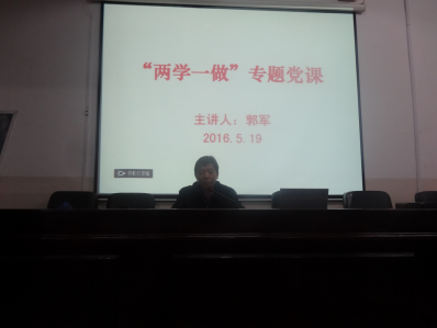 5月19日下午,校党委书记郭军来到马克思主义学院,为全院党员讲授“两学一做”专题党课。郭军从开展“两学一做”活动的重大意义、准确把握“讲政治、有信念”的基本内涵和要求、为什么要强调“讲政治、有信念”、党员教师如何“讲政治、有信念”等方面进行了精彩的阐述,整堂课理论联系实际,全面而又深刻,使参加党课的全体党员得到了一次良好的党性教育。(马克思主义学院党总支供稿)