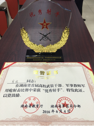 6月4日下午,湖南省首届武装干部、军事教师军用枪射击比赛在湖南警察学院落下帷幕。KY官网参赛队员周樑、宁耐桥、肖俊在比赛中奋力拼搏、沉着应战,取得了团体二等奖的好成绩,为学校赢得了荣誉。来自体育学院的兼职军事教师肖俊以92环获得“优秀射手”荣誉称号,并颁发了证书与奖杯。