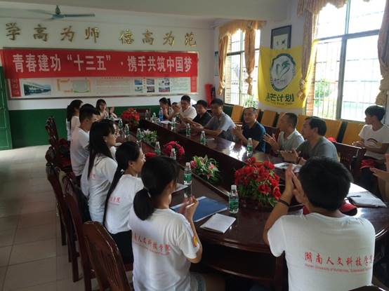 在座谈会上,社会实践队队长周梦兰首先就活动的整体情况作了汇报。她回顾了“麦芒计划”的7年历程,汇报了志愿者不断完善留守儿童教育体系的具体工作和努力。支教组组长陈宇昕、调研组组长许瑞钦分别就支教和调研作了工作汇报。两位带队老师先后对自己的工作、队员的表现和未来工作的思考进行了汇报,提出了今后要策划开设父母课堂和突出社会工作心理援助的特色。家长代表胡小娟女士发表感言,表示早就对队员的到来充满期盼,3年来充分信任实践队的工作。双江乡中心学校校长张光义充分肯定了队员们认真负责、吃苦耐劳的精神传统,并代表双江中心小学400多名师生表示致敬和感谢。副校长刘铁峰高度赞扬了“麦芒计划”暑期社会实践活动的实际成效,强调大家要继续坚持责任意识,确保活动尽善尽美,做到服务社会有始有终,勉励大家要在服务社会的过程中受教育、长才干、作贡献。