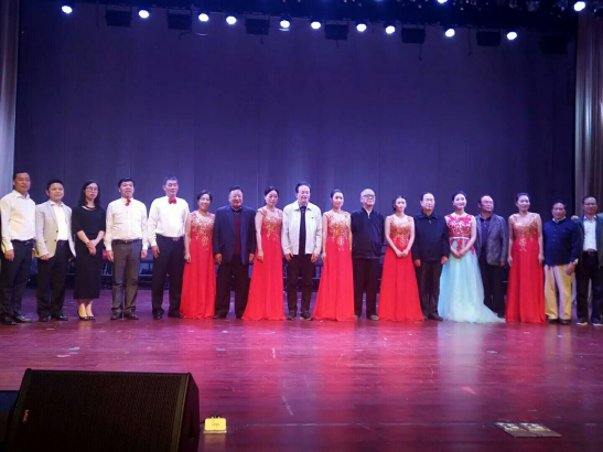娄底市关工委老领导和学校领导与部分演职人员拍照留念
