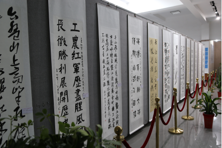 11月7日上午,党委书记郭军,党委副书记刘铁铭,副校长蒋建初、周发明、陈志国,纪委书记杨鑫铨,党委委员金志方以及党政办、纪委、组织部、宣传部、工会、武保处、团委、美术与设计学院等单位负责人一同参观了在美术楼展厅展出的纪念长征胜利80周年师生书画作品展。