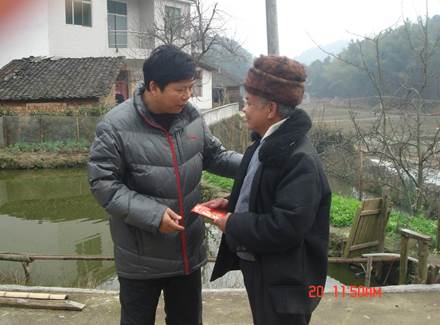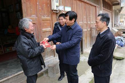 1月20日,党委书记郭军、校长刘和云、党委副书记刘铁铭带领工作人员一行,赴新化水车镇直乐村,开展结对帮扶送温暖慰问活动,为该村68户结对帮扶家庭送上慰问金,并与直乐村村支两委及工作队就谋划好2017年扶贫工作进行了座谈。