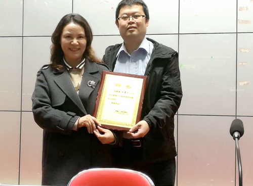石潇纯副校长给王喜文博士颁发聘书