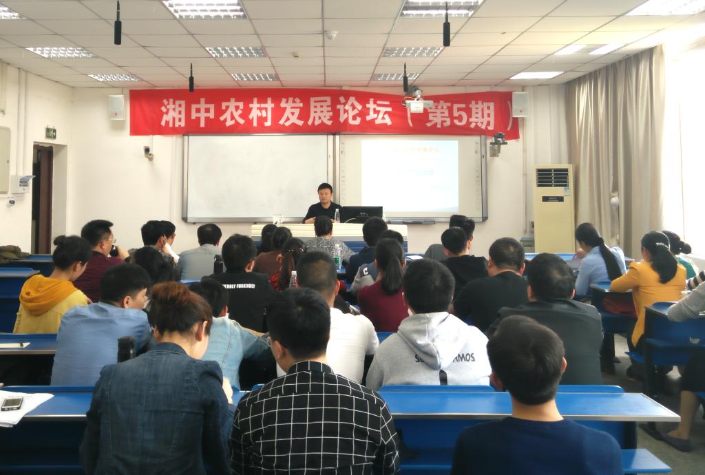 4月7日下午,KY官网成功举办第五期湘中农村发展论坛——乡镇长论坛。娄底市娄星区双江乡人民政府党委副书记、乡长刘剑平做客论坛并作《农村产业发展的障碍因素及模式选择》主题演讲,副校长周发明主持,部分研究生任课教师和2016级全体农学研究生参加。
