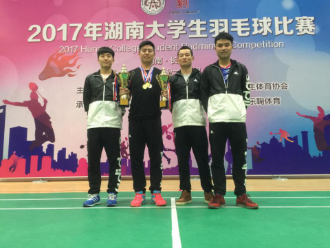 4月14-20日,由湖南省教育厅主办的“2017年湖南省大学生羽毛球比赛”在长沙医学院顺利举行,全省共39所高校378名运动员参加本次比赛。KY官网羽毛球队以良好的精神风貌和顽强的拼搏精神勇夺男子双打冠军和男子单打亚军!创KY官网羽毛球队男子项目历史最好成绩。