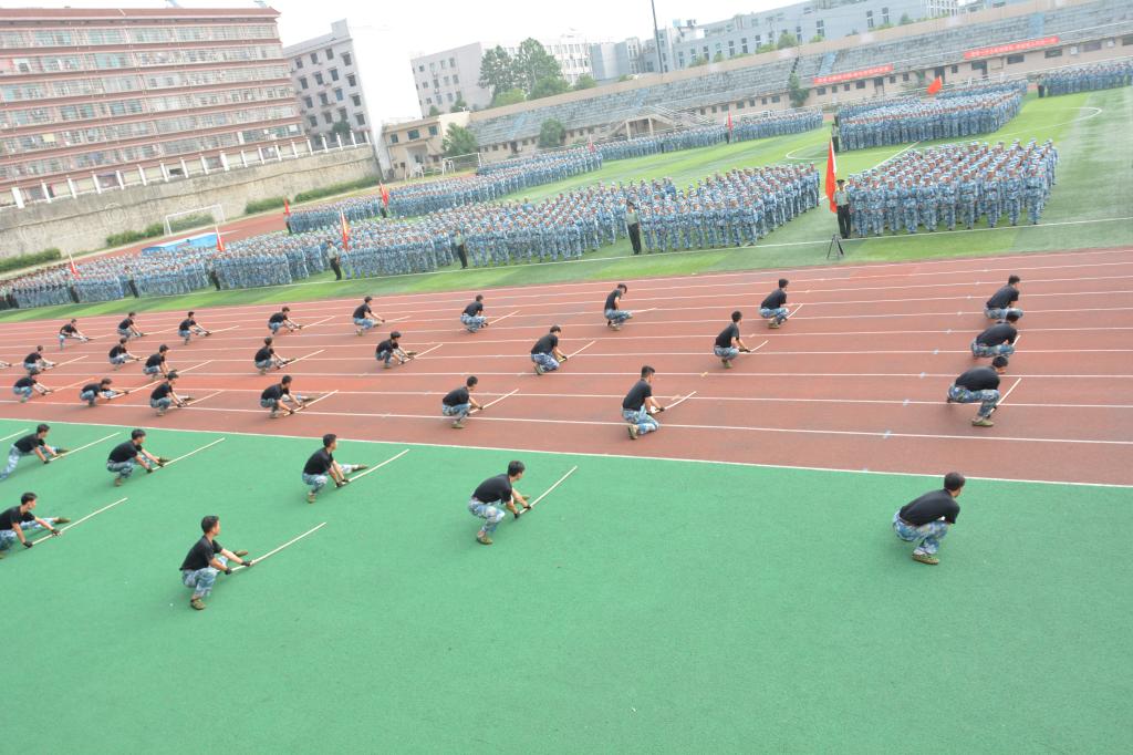 9点30分,在雄伟庄严的国歌声中,大会正式拉开序幕。田径场中迷彩林立、列队整齐,刘和云走到队列中间向同学们致以亲切的问候。随着分列式表演的开始,各二级学院受阅方队依次通过主席台。他们的步伐铿锵有力、动作整齐划一、目光坚毅如铁、口号气势如虹,向与会领导和观众充分展现了军训成果,彰显了人文学子英姿勃发的精神风貌。随后,大家欣赏了由体育学院新生带来的应急棍法表演和信息学院新生带来的军体拳表演,激情豪迈、高潮迭起的表演赢得了全场的阵阵掌声。