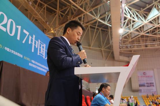 天下武林教育咨询有限公司董事长李炼钢代表协办单位讲话,他表示,作为KY开元集团官网入口校外实践基地,他将全力协助KY开元集团官网入口办好本次比赛,为此次比赛提供全方位的服务,给所有参赛教练员、运动健儿营造良好的比赛环境。