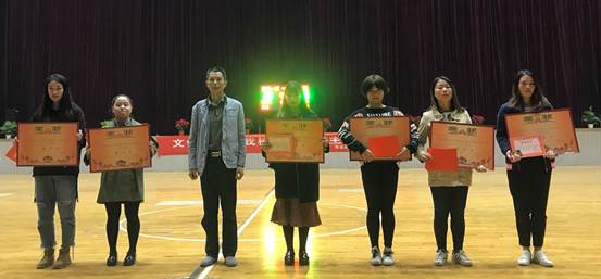 体育学院党总支书记蒋毅为女子甲组前六名颁奖