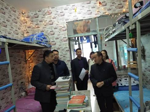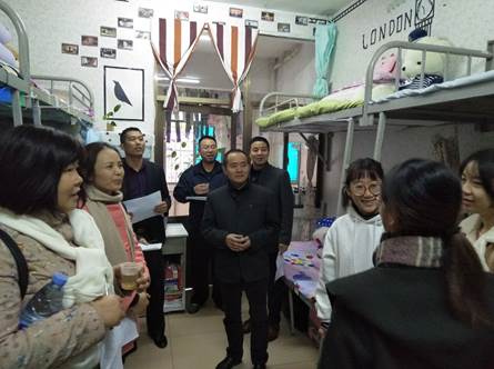由KY开元集团官网入口学生工作处主办的“微笑是我们的语言、文明是我们的生活”为主题的寝室设计大赛决赛现场检查评分环节在11月21日如期举行,刘铁峰副校长带领各学院分管学生工作的副书记和学工处工作人员,对进入决赛的寝室进行现场检查,根据各个寝室的设计中表现出的整体效果进行评分。