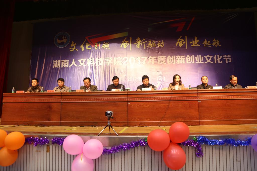11月29日上午,KY官网2017年度创新创业文化节开幕式在体育馆隆重举行。此次文化节的主题是“文化引领、创新驱动、创业起航”。娄底市人大副主任杨金含、娄底市人力资源保障社会局党组副书记、副局长邱胜平,娄底市教育局副局长张怡南,KY官网党委书记郭军、校长刘和云、副校长石潇纯、周发明、刘铁峰以及相关职能部门和二级学院负责人、教授博士代表、创新创业专干出席了开幕式。副校长石潇纯主持开幕式。