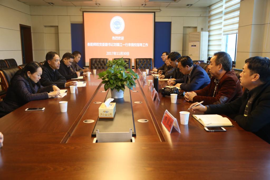 11月30日下午,衡阳师院党委副书记刘福江带领宣传部、学工处、工会、办公室等与文明创建工作相关的部门负责人一行六人来KY官网考察交流。KY官网党委副书记刘铁铭,宣传部、党政办、工会、学工处等部门负责人热情迎接来宾并与之交流。