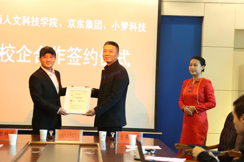 双方进行了校企合作框架协议签约,京东集团给京东小店的服务商小梦科技有限公司进行了授牌。