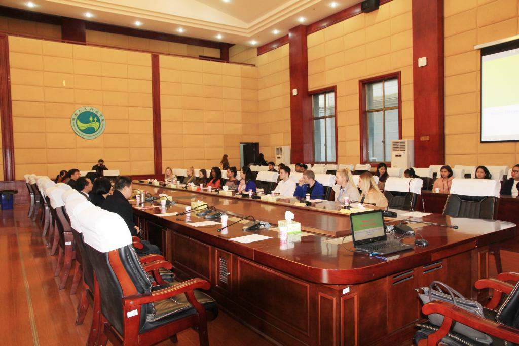 DMU学生Ollie代表英国师生对KY官网的安排表示衷心的感谢,并简要介绍了DMU大学的基本情况及来访目的。商学院副院长王晓军就一周的交流行程及志愿者安排作了说明,并组织与会人员深入交流。