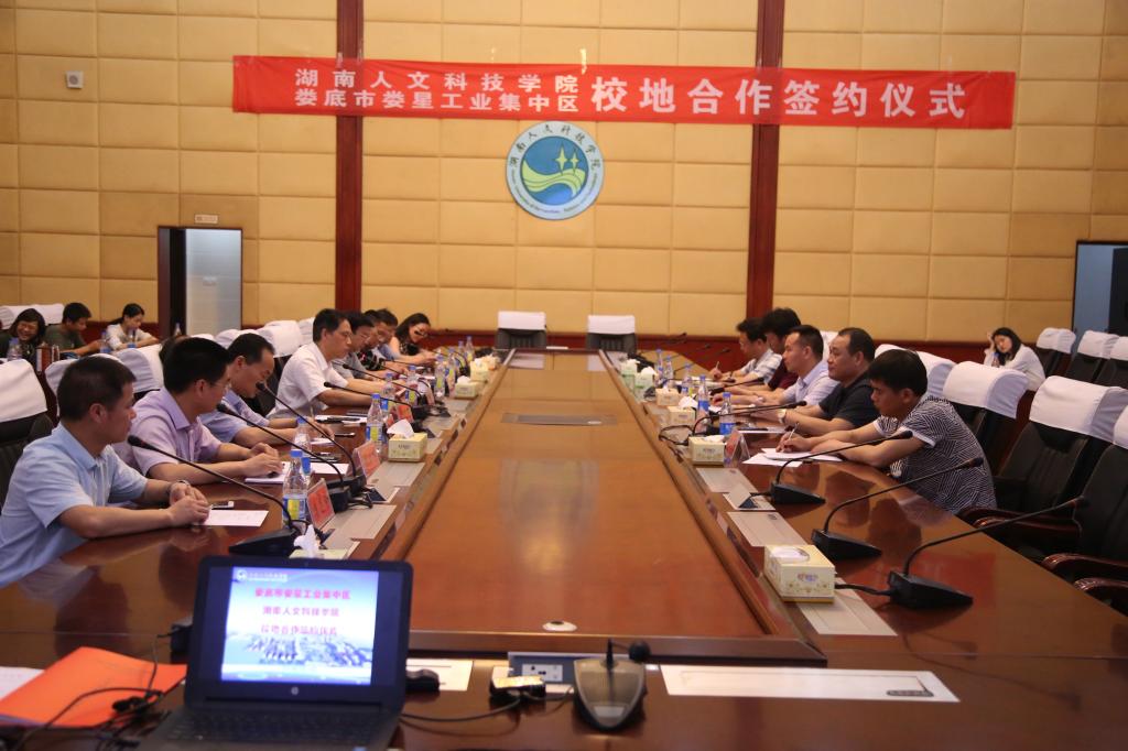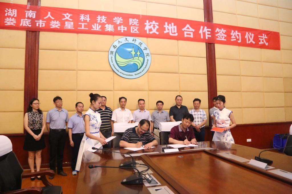 校地校企合作处处长黎建辉、娄星工业集中区付朝晖分别代表校地双方在协议上签字。