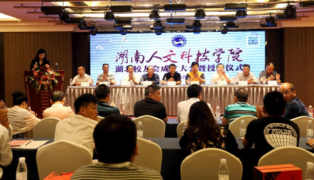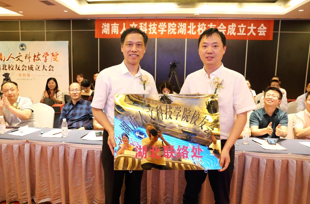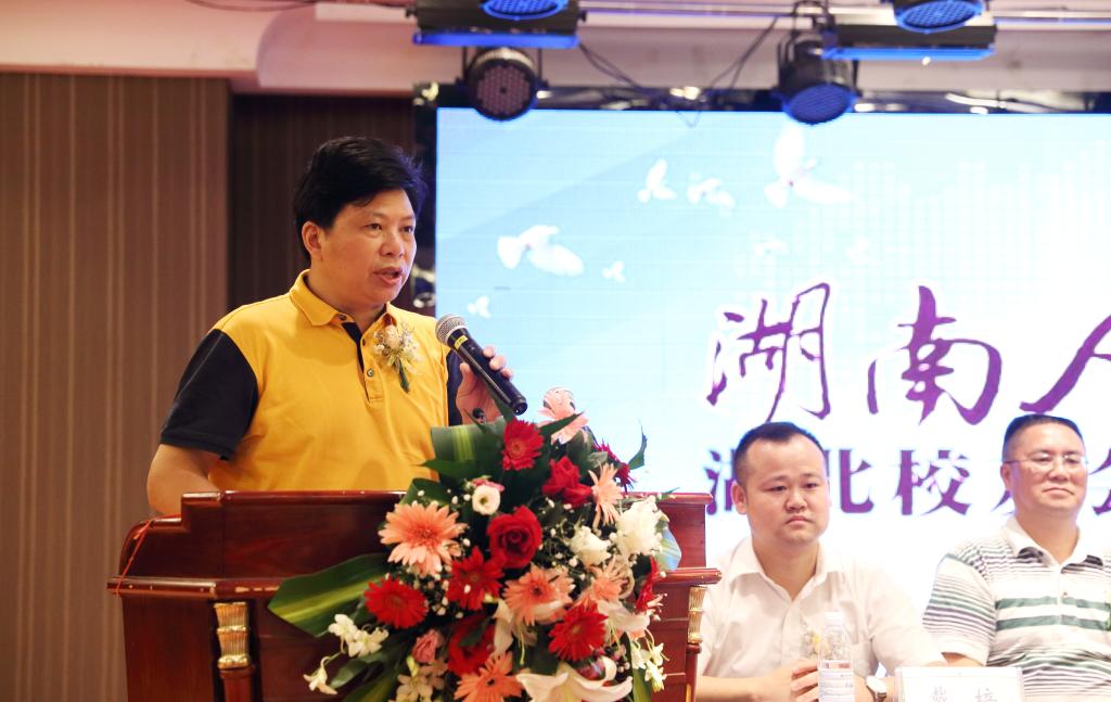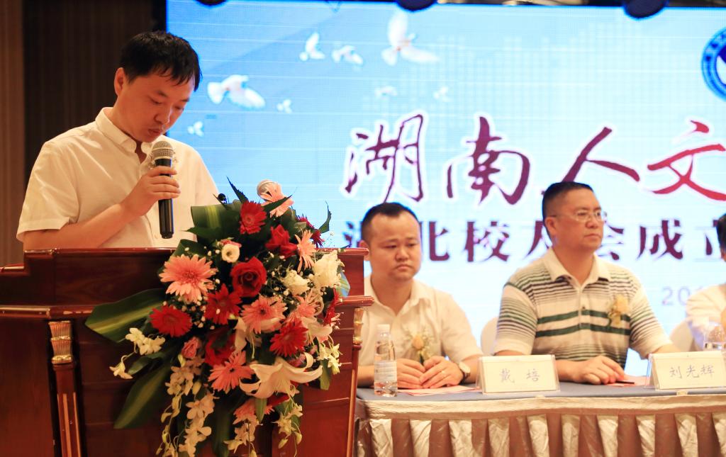 在热烈的掌声中,刘铁铭为湖北校友会授牌。刘和云发表了热情洋溢的讲话,代表学校对湖北校友会的成立表示热烈的祝贺!对多年来一直关心支持学校建设发展的校友及社会各界朋友们表示衷心的感谢。他介绍了学校近年来在办学规模、办学层次、学科竞赛、就业创业、科研成果、平安校园、文明校园建设等方面的建设发展情况。他说,学校所取得的一系列成绩,与我们历届校友的关心支持是分不开的。湖北校友会的成立,肖亮等校友乐于奉献、勇于担当,不辞辛苦,做了大量卓有成效的工作,令大家深受感动。希望大家以此次湖北校友会成立大会为契机,加强联络,积极沟通,共同培育校友文化,聚心聚力聚智聚资支持母校建设发展。热情的邀请大家在今年母校40周年庆典时在海园相聚!