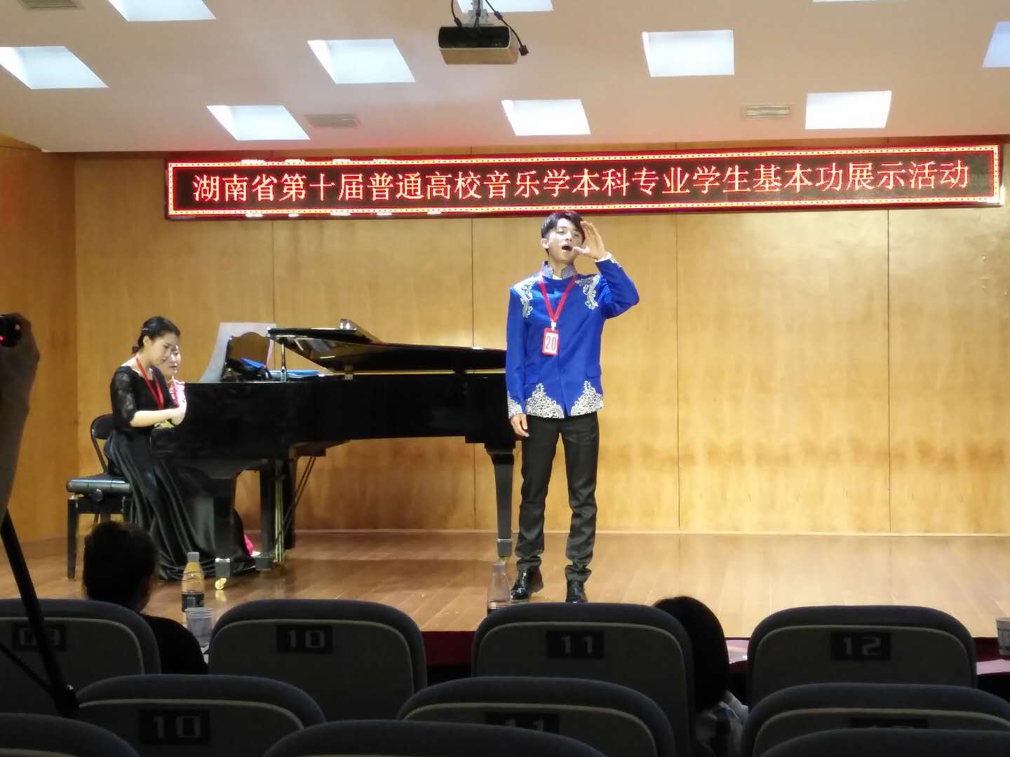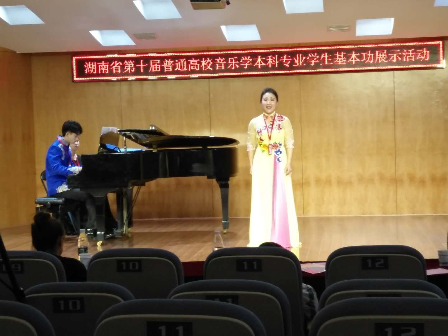 高校音乐学本科专业学生基本功展示活动俗称五项全能比赛,分为钢琴演奏、自弹自唱、歌唱与钢琴伴奏、合唱指挥以及微课展示,体现出学生全面的专业与综合素质,活动由省教育厅组织举办,每两年举行一次,旨在推动我省普通高校音乐学本科专业教学改革,提高人才培养质量,本届活动由湖南城市学院承办,全省包括湖南师范大学在内的18所院校参加,参加比赛活动的学生前期由各个学校提供2015级音乐学专业所有学生名单,4月16日集中在湖南城市学院抽签确定参赛学生人选,学生的确定具有完全的随机性与偶然性,活动主要考察各个学校的日常办学质量和办学成效。展示活动从确定比赛学生到具体比赛,时间只有25天,时间紧,准备项目多,训练任务繁重,本次比赛在教务处直接领导和大力支持下,经过KY官网周密的工作部署和比赛师生团队紧张激烈的赛前准备和训练,最终取得了令人满意的比赛成绩,反映了音乐舞蹈学院近年通过深化教学改革,狠抓教学质量管理,取得了很好的成效。