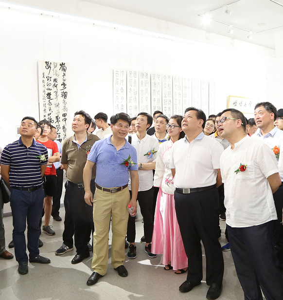湖南省书协领导王希俊、倪文华、刘广文、刘晓斌、崔向君、罗红胜、周平、江波、梁理和KY官网副校长周发明,教务处、美术学院相关领导参加开幕式。全国人大代表、中国书协理事、湖南省文化厅副厅长、湖南省书法家协会主席鄢福初为展览题写展名并参加研讨会,中国书协理事、评审委员会委员、草书委员会委员、湖南省书协草书委员会主任、原驻会副主席兼秘书长陈羲明和湖南省书协驻会副主席兼秘书长、湖南省书协新闻出版传媒委员会主任胡紫桂因公出差,特意以贺信形式向展览表示祝贺,祝展览圆满成功。