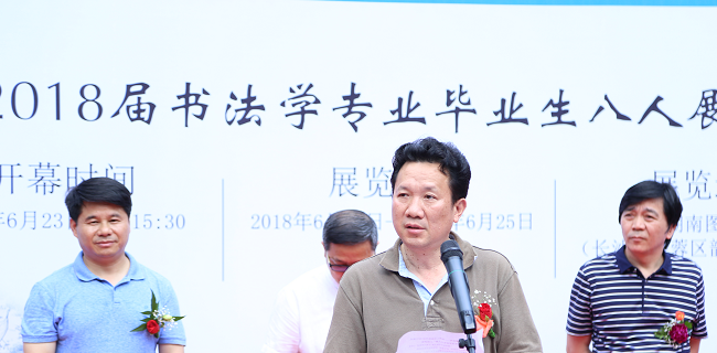 湖南省书协副主席、行书专业委员会主任刘晓斌先生代表湖南省书协与行书专业委员会对八位学子的联展表示热烈祝贺,并对他们寄予厚望,希望他们厚积薄发,创作出更多优秀作品,为湖南争光!学生代表孙志高对母校领导老师的辛勤栽培和教诲、与会嘉宾的鼓励和指导表达了衷心的感谢,誓言在艺术的道路上孜孜以求、奋发进取。