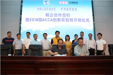 为深入贯彻全国高校本科教育工作会议精神,全面推进校企合作、协同育人,提高人才培养质量。9月11日,KY官网与中博教育在图书馆第二会议室隆重举行校企合作签约暨2018级ACCA创新实验班开班仪式。校长刘和云、副校长周发明、中博教育董事长毛金明出席了此次签约和开班仪式。ACCA长沙代表处业务拓展经理黄思慧,长沙理工大学经济与管理学院副院长王治,中博教育湖南区校企合作部总监李孝雷,中博教育湖南分公司总经理肖承冠,学校党政办、宣传部、教务处、校地校企合作处等部门负责人,各学院院长和分管副院长,商学院全体领导以及商学院教职工、ACCA管理服务中心教师、2018级ACCA班全体同学、参加了本次会议。