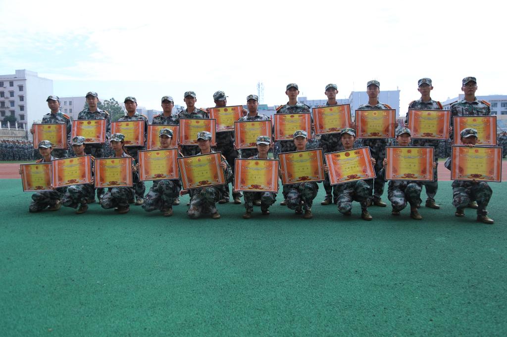 分列式结束后,刘红燃宣读了军训先进集体、先进个人和军训标兵的表彰决定。领导们为获得荣誉的先进集体代表进行颁奖。谢柳为教导大队颁发锦旗,感谢全体教官为军训工作做出的辛勤付出。