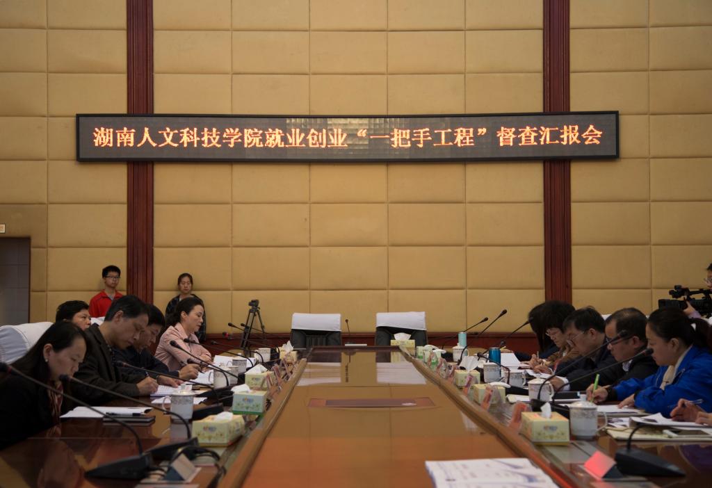 10月26日上午,省教育厅就业创业工作督查组杨可以一行六人莅临KY官网,对KY官网毕业生就业创业工作进行检查和指导。汇报会在图书馆第一会议室举行,校党委书记郭军、校长刘和云、党委副书记刘铁铭、副校长石潇纯、党委委员宣传部部长谢柳以及相关职能部门负责人和各二级学院院长、书记、分管就业工作的副书记、就业专干参加会议。