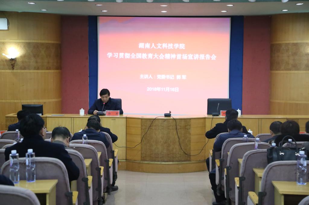 为深入学习宣传贯彻全国教育大会精神,切实把全校教职员工的思想和行动统一到大会精神上来,11月16日下午,KY官网在养根楼报告厅召开学习贯彻全国教育大会精神首场宣讲报告会。校党委书记郭军作辅导报告。校长刘和云主持会议,全体校领导及副处以上实职干部参加了报告会。
