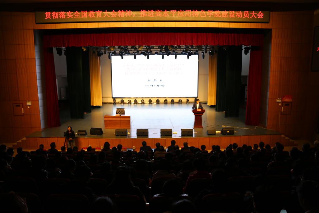 11月22日下午,KY官网贯彻落实全国教育大会精神、推进高水平应用特色学院建设动员大会在逸夫楼音乐厅召开。党委书记郭军主持会议,校长刘和云作动员报告,副校长石潇纯、副校长周发明分别就高水平本科教育和高水平应用特色学院建设方案进行了解读。全体校领导、全校副处以上实职干部、各二级学院全体人员、教学督导、机关教辅单位全体成员、学生代表近700人参加了大会。