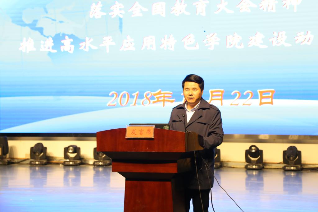 郭军在总结讲话中指出,要深入学习领会习近平总书记关于教育的重要论述,全面准确把握其科学内涵和精神实质,以更好地武装头脑、指导实践、推动工作。广大干部教师要认真学习研讨本次动员大会的主要精神,切实把思想和行动统一到校党委行政的决策部署上来,同心协力,开拓创新,努力在人才培养、学科建设、社会服务、文化创新等方面履行新使命,体现新担当,展示新作为。要深刻领会高水平本科教育建设和高水平应用特色学院建设的丰富内涵,认真看、仔细学、用心悟,明确工作目标,知晓干什么、怎样干,为建设高水平应用特色学院贡献力量。各单位要认真抓好本次动员会的贯彻落实,广泛开展研讨,提高思想认识,统一行动步骤,深入查找问题,并结合工作实际,明确推进高水平本科教育建设、应用特色学院建设的重点任务和奋斗目标,层层压实责任,强化工作措施,加快建设好应用特色学院。