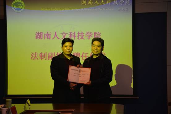11月27日晚上,KY官网在明德楼第三会议室举行了法制副校长聘任仪式。娄底市公安局党委委员陈开军受聘担任KY官网第二任法制副校长,校长刘和云郑重地将聘书交到了陈开军手上。