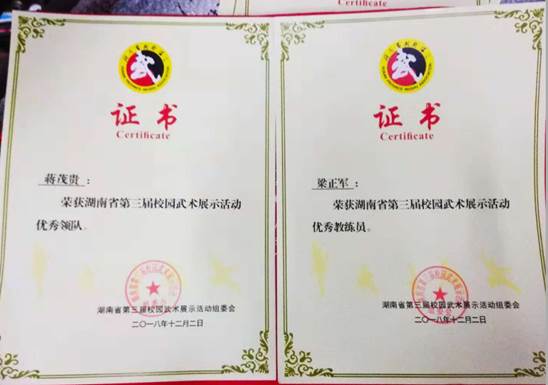 12月2日,由湖南省体育局、省教育厅联合主办的湖南省第三届校园武术展示活动比赛在湖南师大附中高新实验中学体育馆举行,本次比赛选手达1800人,有全省14个市州的近90支代表队参赛。KY官网段位武术代表队获得高校组“第一名”,大会“最佳展示奖”,并荣获全省首批“湖南省武术特色学校”荣誉称号。蒋茂贵获“优秀领队”,梁正军获“优秀教练员”。